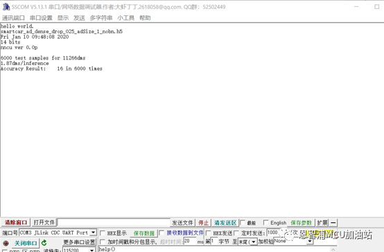 编译工程,通过JLink连接板子,并打开串口程序,接收串口的调试信息。开始debug模式,工程默认使用sram运行程序,等待测试程序执行。执行结束后,串口会输出执行结果:即平均差值,和平均执行时间。 小编训练的模型6000次平均差值是16,每次计算时间1.87dms——0.187ms。 实战演习 经过模拟测试,模型性能符合预期,下一步就是把相关代码集成到电磁车系统中。首先集成nncie库nncie_imxrt10x0.lib,model.nncu.c,以及nncu_mcu\cmsis_nn\Source中的CMSIS_NN相关代码(参照测试工程)。其次集成模型的调用方法: